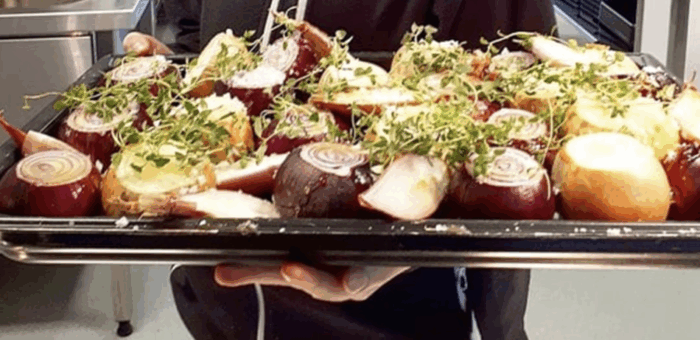 Ta ut löken och ringla lite honung och salt lite lätt på löken