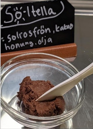 – mixa 2 dl smörbönor med ca 3 dl rostade solrosfrön. Tillsätt 3 msk kakao, lite