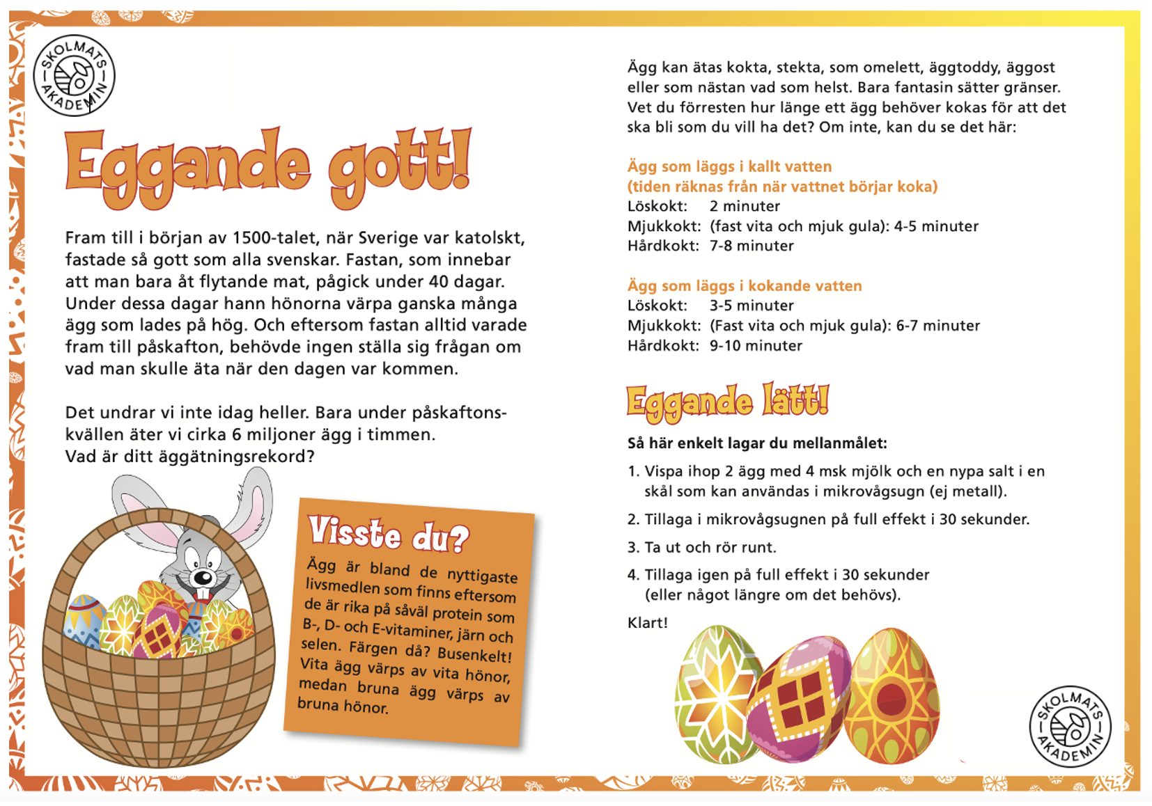 Våren är här, ljuset är tillbaka och Skolmatsakademins bordsryttare med nyttigt påskäggstema kan dukas fram!