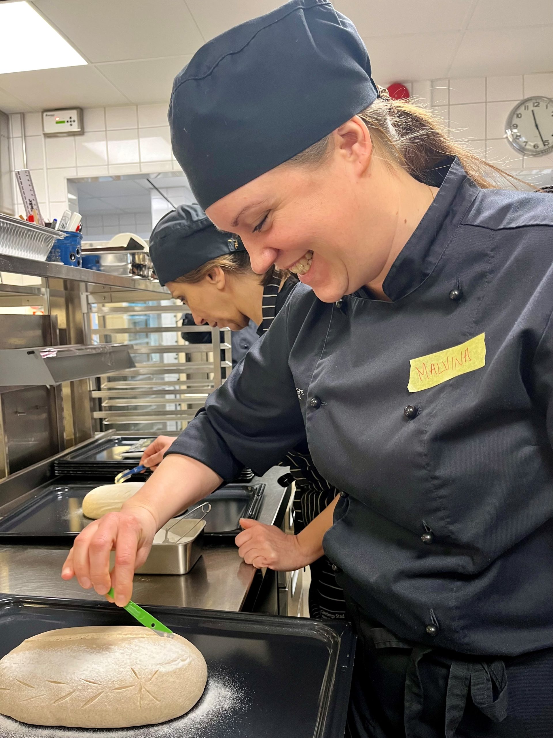 Vid två fullbokade tillfällen blandades teori med praktik och olika typer av bröd utforskades. Även fin konst skapades när det tränades på att snitta brödets yta innan gräddning.
